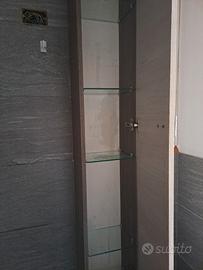 2 colonne da bagno in legno con venature in rovere sbiancato internamente fornito di mensole in vetro