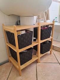Mobili bagno ikea modello ragrund. Due sottolavabo angoalari, scaffale porta asciugamani in bambu. Compresi 7 cestini in cotone nero e specchio tondo diametro 80 cm con profilo nero. Ritiro, smontaggio e trasporto a carico dell’acquirente.