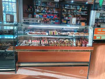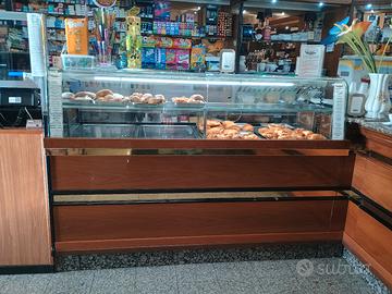 Vendesi arredamento bar professionale completo, in ottime condizioni estetico-funzionali. Tutti i moduli presentano finiture coordinate in legno pregiato, profili neri e inserti dorati, con piani di lavoro in granito. Una soluzione 'chiavi in mano' ideale per nuove aperture o restyling. Il blocco comprende 4 pezzi principali: Modulo Caffetteria: Con piano in granito per macchina caffè e lavello integrato. Vetrina Gelato ISA: Modello professionale a 12 vaschette (vetro curvo). 2 Vetrine Refrigerate Pasticceria/Tavola Calda: Doppia esposizione su più livelli, ideali per dolci, cornetti e gastronomia. Stato: Motori efficienti, vetri integri e pronti all'uso. Vantaggio: Estetica coordinata per tutto il locale. Prezzo: 8.000€ per il blocco completo. Smontaggio e Trasporto: A carico dell'acquirente."