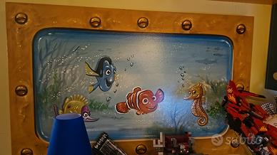 Vendo pannello dipinto a mano da artista disegno savana su multistrato per camera ragazzi misure 122x220 e quadro in legno Nemo per camera ragazzi 50x90 solo ritiro in zona