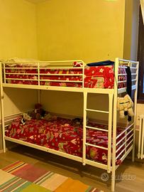 Letto a castello Ikea, struttura in metallo, color bianco. Misure: 207 × 96 x 160 cm. Completo di due materassi. Usato pochissimo, Tutto come nuovo, in condizioni perfette.! Trasporto e smontaggio a cura dell’acquirente.