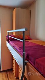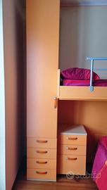 Camera ragazzi con due letti comprensivi di materassi, armadio con anta e cassetti, due cassettiere, scrivania e libreria, vendo per inutilizzo. Condizioni come nuovo. Regalo copriletto, lenzuola, cuscini, due lampade comodino, lampadario.