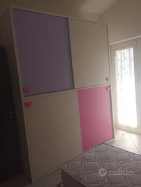 Cameretta come nuova vendo causa trasferimento al nord... Armadio scorrevole più armadio due ante più scrivania con sedia...piu comodino e cubi porta libri marca mondo cameretta compresa di letto a scoparti senza materasso