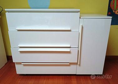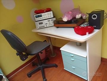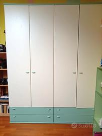 vendo cameretta colori pastello adatta sia per maschi che per femmine, composta da 2 letti, un comodino, un armadio 4 ante, una scrivania con sedia, una cassettiera, una piccola libreria, un espositore componibile, 4 mensole grandi e 2 mensole piccole. ritiro di persona.