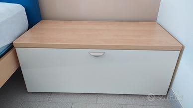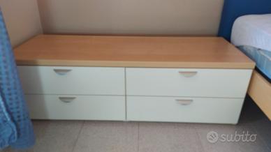 Letto da una piazza e mezza con due cassettiere laterali staccate. Mobile libreria con scrivania angolare e mensole. Prezzo 400 euro.