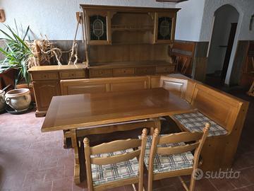 vendesi cassapanca ad angolo, inclusi tavolo più due sedie in ottime condizioni, prezzo 400euro trattabile. mobile vetrina in legno massiccio prezzo 350euro trattabile più comò prezzo 50euro.si vende in blocco oppure separatamente. possibilità trasporto a domicilio.