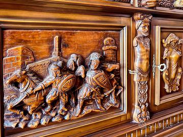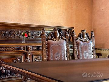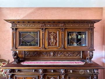 Vendo intero arredamento in noce nazionale per sala e salotto impreziosito da numerose decorazioni (rilievi e/o intagli).