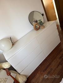 DISPONIBILE DA FINE GIUGNO - INIZIO LUGLIO. Vendo arredamento completo camera da letto matrimoniale, marca IKEA, letto matrimoniale senza materasso, con due scompartimenti contenitore, armadio 6 ante di cui una specchiata, cassettiera con 6 cassetti lievemente danneggiata, vedi foto allegate. Smontaggio e trasporto a carico dell’acquirente