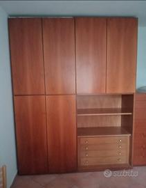 armadio, cucina, tavolo con ruote e 4 sedie, mobile soggiorno basso, mobile soggiorno alto,divano letto, due letti con rete ortopedica e materasso, comò, specchio