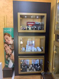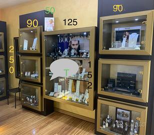 Vendo arredamento completo per gioielleria in ottime condizioni, ideale per negozi di preziosi, bigiotteria o accessori di fascia medio-alta. L’arredo è composto da vetrine espositive a parete con struttura modulare, caratterizzate da finiture eleganti color testa di moro opaco e cornici color oro satinato, che valorizzano al massimo i prodotti esposti. Composizione: - N. 2 vetrine grandi da parete (circa 180 x 150 cm) con illuminazione integrata e base con cassetti - N. 1 vetrina grande centrale (circa 125 x 150 cm) - Moduli vetrina verticali componibili (larghezza circa 90 cm, altezza totale circa 240 cm) - Vetrine orizzontali (circa 119 x 75 cm) ideali per esposizioni dedicate Cassettiere inferiori integrate per contenimento Ogni vetrina è fornita di Illuminazione LED integrata Struttura robusta e professionale Ottima visibilità dei prodotti Design elegante e senza tempo Arredo modulare facilmente adattabile a diversi spazi Lexstrutture sono in ottimo stato, sempre mantenuto con cura. Ideale per:gioiellerie, negozi di accessori, concept store. Possibilità di visione su appuntamento. Per maggiori informazioni o foto aggiuntive contattatemi in privato.