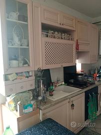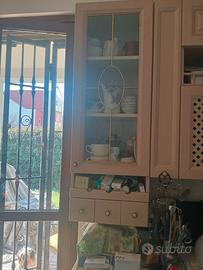 Cucina country in vero legno come nuova. Divano di pelle blu . Letto ponte e scrivania e anche camera da letto molto bella seguono foto