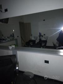 compreso di lavabo sedie specchi phono grande con poggia piedi anche le sedie due lavabi con sedute due sedie due sedie con postazioni prezzo shok tutto compreso il prezzo e pr tutto il negozio .