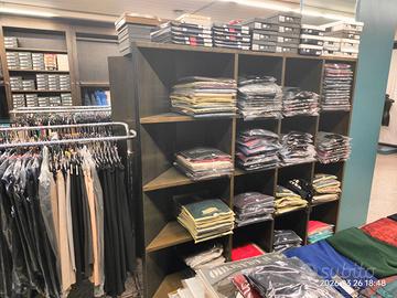 Vendesi arredamento completo per negozio di abbigliamento, ideale per boutique, showroom o allestimento di nuovi spazi commerciali. Composizione: - Appenderie e stender in metallo - Scaffalature modulari - Espositori per capi piegati - Banco cassa - Manichini Caratteristiche: Design classico ed elegante Ottime condizioni Adatto a diversi tipi di prodotto Facile da montare e adattare a vari spazi Disponibile per visione su appuntamento entro il 30 aprile 2026. Smontaggio e trasporto a carico dell’acquirente. Prezzo interessante - Possibilità di vendita in blocco o singoli elementi. Per maggiori informazioni, ulteriori foto o per fissare una visita, contattami in privato.