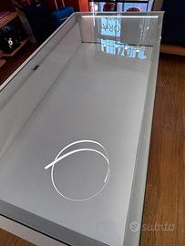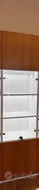 N° 5 Vetrina interna cm 7 0x42, 5 x 2 7 0h N°1 Elemento valigeria cm 140x60x240h: struttura con cassa in nobilitato mm 18 di colore bianco; mensole in nobilitato mm 36 di colore bianco con frontalino cm 5h N°2 parete espositiva cm 90x240h: •n°2 pannelli in nobilitato di colore bianco mm 18 cm 90x240h •n°6 mensola cm 90x42,5 in listellare di tanganika verniciato con finitura naturale N° 1 Banco- espositivo cm 100x60x100h: N°2 parete espositiva cm 90x240h: •n°2 pannelli in nobilitato di colore bianco mm 18 cm 90x240h •n°6 mensola cm 90x42,5 in listellare di tanganika verniciato con finitura naturale N° 1 Banco- cassacm 120x60x100h: • struttura con cassa in nobilitato mm 18;lo zoccoletto è rientrato di cm 5 . IN VENDITA ANCHE SINGOLARMENTE INFO 3488227684