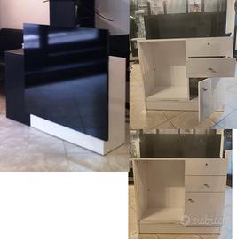 VENDESI ARREDAMENTO COMPLETO PER PARRUCCHIERE/BARBIERE (in regalo 4 sedie) COMPRENDE: 3 POSTAZIONI (con mensola e porta phon),3 appoggia piedi,2 mobiletti a cassetto,lavandino a cono inox con miscelatore e doccia(usato per le barbe),casco a muro con braccio,lampada a muro con braccio,divano attesa di 2 posti,2 lavaggi,cassa e casco portadile con rotelle. IDEALE PER CHI VUOLE APRIRE O RINNOVARE IL PROPRIO SALONE.