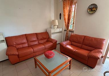 - n. 2 divani pelle color arancio a 3 e 2 posti, L205/160 P90