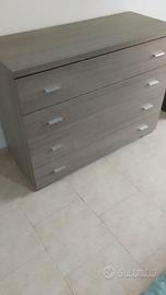 Camera da letto composta da letto contenitore due comodini una cassettiera con quattro cassetti un armadio con tre ante scorrevoli.