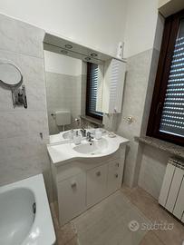 Mobili bagno completi di lavabo con mobile contenitore e specchiera.