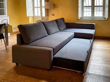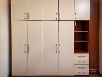 CUCINA 275cm+175cm Cucina anta telaio ciliegio Lunghezza totale L.270 H.228 (60+45+45+15+60+45) Forno Ignis ventilato L.60, Piano cottura vetroceramica Ariston L.60, Cappa Turbo Air L.60, Frigo con congelatore Candy L.60, Lavastoviglie Beko L.45 Cucina lineare anta telaio ciliegio lunghezza totale L.175 (45+90+40) CAMERA Armadio Struttura ciliegio ante crema lunghezza totale L.225 (90+90+45) H.231 P.60 Comodini Ciliegio Crema L.47 H.47 P.35 SOGGIORNO Divano trasformabile con chaise longue ed elemento estraibile 228x150 P.90 Parete giorno con elemento ante e cassetti ciliegio crema L135 H.42 P.42, elemento ciliegio anta vetro vasistas L135 H.42 P.42, pedana L.270 P.55 e mensole L.135 H.80 Tavolo ciliegio e alluminio allungabile apertura a libro 90x90(180) Scrivania L.105 H.75 P.”50 INGRESSO Armadio dispensa struttura ciliegio anta finitura crema L.90 H.230 P.58 Credenza anta telaio legno verniciato grigio chiaro L.75 H.182 P.42 Madia anta telaio legno verniciato grigio chiaro L.75 H.92 P.43 Specchio rotondo D.50 BAGNO Lavabo Dolomite con miscelatore Ideal Standard e mobiletto 80x36 (Prof. Lavabo 59) Specchiera con mensola e luci L.82 H.82 WC Dolomite sospeso L.35 P.52 con copriasse Bidet Dolomite sospeso L.35 P.52 con miscelatore Ideal Standard Armadio porta lavatrice bianco L.65 H.196 P.55 Smontaggio e ritiro a Torino a carico dell’acquirente