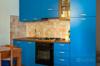 Angolo cottura, divano letto matrimoniale, tavolo apribile a libro, sei sedie, letto matrimoniale, armadio, due comodini, letto a castello ad "elle" + armadio. Smontaggio e trasporto a carico dell'acquirente
