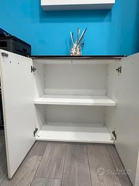 ARREDAMENTO COMPLETO UFFICIO: 3 SCRIVANIE CON CASSETTIERA; 2 MOBILI. DISPONIBILI: N.3 SCRIVANIE CON TOP BIANCO IN LEGNO LAMINATO 2 SCRIVANIE MISURANO: ALTEZZA 73 CM LARGHEZZA 120 CM PROFONDITA' 80 CM 1 SCRIVANIA GRANDE MISURA: ALTEZZA 73 CM LARGHEZZA 160 CM PROFONDITA' 80 CM N.2 MOBILI IN LEGNO LAMINATO, MISURE: ALTEZZA 89 CM LARGHEZZA 91.5 CM PROFONDITA' 45 CM