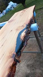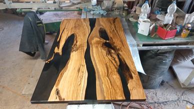 Realizzazione di qualsiasi elemento di arredo con legno pregiati come mensole lavabo, mensole, tavoli, tavolini, librerie, scrivania, top,mobili bagno, mobili TV e molto altro con possibilità di personalizzazione con inserto in resina per interno e esterno per maggiori informazioni scrivetemi