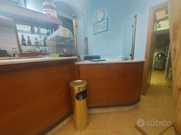 Arredamento completo da bar con vetrina gelato, vetrina per pasticceria, bancone e retro bar in legno.
