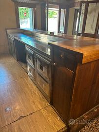 1) Banco - bancone bar in legno massiccio a 3800 €. Usato in ottime condizioni, Con mensola porta bottiglie