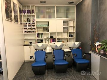 Vendo arredamento parrucchiere Vezzosi. ANCHE SIGOLI PEZZI - 6 Poltrone Vezzosi (2 con poggia testa) - 6 Specchi Vezzosi - 3 Lavaggi Vezzosi - 2 Sgabelli - 3 Poltrone attesa Vezzosi - Cassa / Reception angolare in formica e marmo - Mensole in marmo Labrador - 1 espositore Medavita (legno e lamiera) - mobili vari in formica con mensole in cristallo CONTATTAMI PER INFO E PREZZI