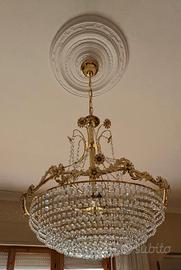 sala completa con tavolo e sedie, mobile, lampadario, angoliera, divano e poltrone ..stile povero in Buone condizioni