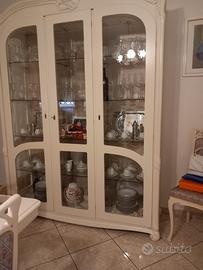 Mobili da salotto completa di cristalliera contro mobile tavolo e sedie in vero legno pesante e vetro.