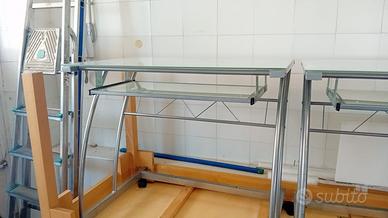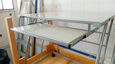2 tavoli in cristallo da PC, 2 sedie girovoli piccole per tavolo da PC, 1 poltrona per scrivania