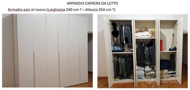 Per trasferimento in altra casa vendo in blocco arredamento di qualità come nuovo. Consegna e montaggio comprese nel prezzo (in tutta Italia isole escluse). Cucina con elettrodomestici: frigo, forno, lavastoviglie, piano cottura e kappa (l 3.90m) -Armadio camera da letto in ciliegio con ante in vetro (l 2.70m x h 2.50m) -Parete attrezzata + porta TV integrato (l 2.20m x h 2.40m) -Mobile da cameretta con piano scrittoio integrato, libreria, cassettiera e pensili (l 2.40m) -Armadio camera da letto (l 2.40m x h 2.50m) -Armadio da bagno con porzione aperta (l 1.60m x h 2.20m)