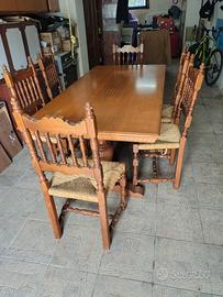 Vendo un mobile con vetrina, una vetrina, un tavolo da pranzo con 6 sedie, un tavolino tutto della stessa serie in stile anni 80 di fabbricazione artigianale in legno, il tutto in perfette condizioni. Ritiro in loco. Anche separatamente: