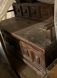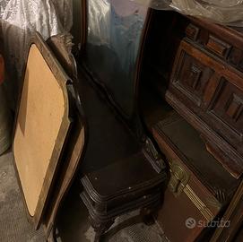 Vendesi come da foto: Como’ con tre cassetti e specchiera, mobile porta tv o altro, mobile con internamente macchina da cucire NECCHI, cristalliera con due cassetti, arredamento como’ con specchiera ed una cassapanca.