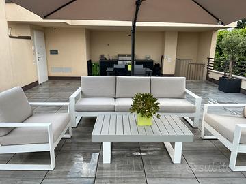 Materiale struttura tutta in alluminio . Imbottiture pari al nuovo; in inverno tenuto tutto sempre coperto.