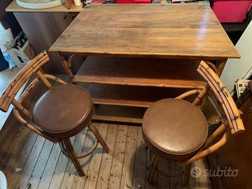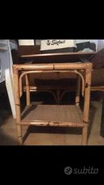 arredamento da interno / esterno in bambu' vintage composto da mobile con 2 sgabelli , divano e 2 tavoli con ripiano in vetro piu' 2 tavolini totale 7 pezzi. Non vendo separatamente ma tutto in blocco. Prezzo trattabile
