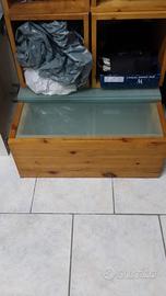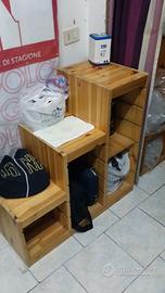 vendo arredo in legno proveniente da un negozio. Comprende 2 tavoli da esposizione con 2 ripiani in vetro misure 60lx60px120h, n. 2 scaffali a gradoni con ripiani modulari in altezza misure 120hx120lx36p, 6 cubi 30x30x30, 1 base lunga senza ripiano in vetro 180lx30px12h, 1 base quadrata con ripiano in vetro misure 60lx60px15h e 1 sgabello. Tutto in ottime condizioni, bello e robusto.