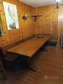 VENDO AREDAMENTO PER TAVERNA CON TAVOLO MASSICCIO SEDIE ANGOLO BAR E CREDENZA OTTIMO STATO COME DA FOTO