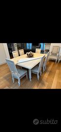 vendo arredamento completo, mobili antichi periodo attorno al 1930. Sono stati tutti decappati e sistemati da restauratore in Seregno (MonzaBrianza). Si tratta di credenza, mobile ad angolo con vetrinette (bellissimo), tavolo allungabile con sedie, poltrone, mobile basso, fioriera con specchiera alta, lampadari, ed altri arredi. Tutti con elementi di decoro intarsiati. Vendo tutto l'arredo insieme. Occasione davvero unica per arredare una villa di campagna, una casa d'epoca. Subito disponibili.