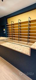 Cerchi un look distintivo per il tuo punto vendita? Vendo arredamento completo per negozio, realizzato su misura da un maestro falegname. I mobili fondono l'estetica industriale del legno OSB con finiture moderne in nero opaco, garantendo un impatto visivo caldo ma estremamente professionale. Dettagli dei Componenti: • Bancone ad Angolo (Protagonista del locale): • Dimensioni: 480 x 193 x 70 cm (Altezza 105 cm). • Caratteristiche: Include una vetrina espositore integrata (160 x 70 x 22h cm) ideale per accessori o prodotti di pregio e spaziosi ripiani posteriori per l'organizzazione del punto cassa. • Set Mobili Contenitori (5 unità): • Dimensioni: 76 x 40 x 60h cm ciascuno. • Configurazione: Mobili a 2 ante, perfetti come base espositiva o magazzino rapido. • Scaffalatura Modulare (5 moduli): • Dimensioni totali: Larghezza complessiva circa 380 cm (singolo modulo 76 x 30 x 230h cm). • Configurazione: 7 ripiani per modulo, offrono una grandissima capacità espositiva sfruttando l'altezza. Materiali e Finiture: Tutti i pezzi sono realizzati in OSB di alta qualità, levigato con cura e trattato con vernice protettiva trasparente e dettagli in nero opaco. Questa lavorazione esalta la texture naturale del legno, rendendo ogni pezzo unico, resistente e facile da pulire. Perché sceglierlo? • Design Unico: Non è un mobile industriale in serie, ma un pezzo d'artigianato. • Condizioni: Ottimo stato, vendesi esclusivamente per cambio attività. • Versatilità: Perfetto per abbigliamento, oggettistica, showroom o concept store. Prezzo: Trattativa riservata. Disponibilità: Vendita in blocco (preferibile) o pezzi singoli valutabili separatamente.