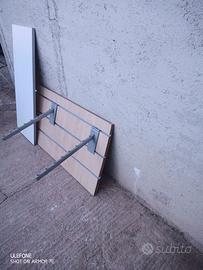 Numero 26 Pannelli 90x120cm dogati per arredamento di negozio o di cabina armadio completo di 40 mensole complete di supporti, diversi tipi di staffe per appendere e di n3 banchi espositori.