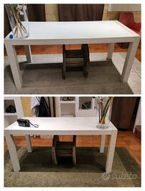 Bancone cassa, due tavoli, due specchi, due pareti con appendiabiti e mensole retroilluminate, due poltroncine pouf, due tappeti. Tutto in ottime condizioni.