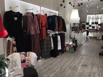 Arredamento completo per negozio di abbigliamento e intimo composto da un grande tavolo con piede centrale, misure 180x100x 90 . 2 cassettiere , 150x46x84, a tre cassetti con pannelli separatori per dividere le tg e con ruote spostabili e frenanti che si possono inserire anche sotto al tavolo. 4 pannelli retroilluminati a led con grata anteriore a fori rotondi, ai quali si possono attaccate i ganci o i pali per l’esposizione dei capi. Questi pannelli sono modulabili a seconda delle esigenze, in quanto i paletti o i ganci sono spostatili come si preferisce, misure 150x280 l’uno. Un bancone per cassa, 250x63x92, con due ante scorrevoli e piani interni a vista frontale e luci led, e, sul retro un cassetto con serratura e sportelli con mensola, per porre le buste e tutto l’occorrente per la cassa. Parete per camerini retroilluminata a led con griglia traforata come le altre pareti. Struttura a rete a soffitto con luci led per l’illuminazione e una struttura lampadario geometrica a led, entrambe in ferro, smontabili e modulabili. Struttura appendiabiti a parete in ferro geometrica con luce led interna modulabile , per illumninare diretta i capi. L’arredamento ora non è visibile per come era montato, in quanto è stato smontato tutto 3 anni fa. Sono possibili da vedere solo i sigoli pezzi. Queste foto rendono più o meno come era l’arredamento una bolta montato
