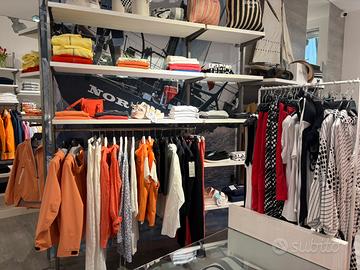 - circa 20 mq di scaffali espositivi (acciaio e legno bianco)