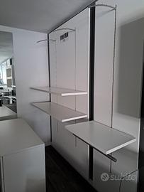 vendesi arredamento negozio abbigliamento, composto da 7 pannelli grandi e 3 piccoli, un banco cassa, due tavoli uno piccolo e uno a parete.. per uno sulle misure contattatemi