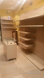 Vendo 35 metri lineari arredo commerciale luxury, struttura mensole modulare con binario,che copre una superficie di 200mq circa, il tutto il rovere sbiancato, compreso i 5 banchi vendita il tutto in ottime condizioni, pagato 45.000 euro circa documentabili con fattura,lo vendo a 11000 euro.