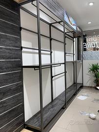 Vendo arredamento negozio abbigliamento e calzature colore urban( grigio antracite). Con i mobili si puo’ arredare un negozio di 150mq. L’arredo è composto da 2 armadi, cassetti, scaffali, appenderia, 2 tavoli d’appoggio , grande mobile cassa con scaffali. I mo ili sono nuovi.