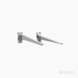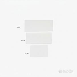 circa 60 metri lineari di pannelli dogati compreso di reggimensole mensole e ganci di appenderia + 3 isole centrali a 3 piani tutto colore bianco