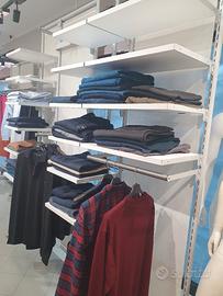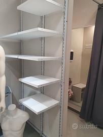 Vendo per cessata attività arredamento negozio completo di struttura a parete e mensole di varie grandezze con ganci di fissaggio e barre espositori colore beige
